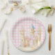Preppy Watercolor Beach Party Paper Plates. Sand castle on a pink gingham paper plates.