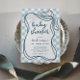 Celebrate the joy of a new arrival with this stylish dusty blue boys baby shower invitation. Featuring a classic chequered background and hand-drawn details, this design blends modern charm with timeless elegance. The wavy bow border adds a touch of coquette-inspired whimsy, making it perfect for a soft and sophisticated celebration. Whether you're hosting a casual gathering or an elegant affair, this invitation sets the perfect tone with its trendy yet playful aesthetic. Personalise it with your event details for a beautifully customised look that guests will love.