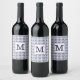 Preppy White Blue Octagon Geometric Monogram Wine Label