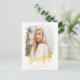 Preppy Yellow Script Photo Graduation Thank You Postcard