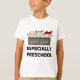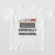 Three stick figure kids hold a writing board that reads "School is Cool!" on this cute Preschool design on preschool T-shirts, hoodies, mugs, cards, stickers, tote bags, and other preschool apparel and gifts.