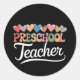 Preschool Teacher First Day Groovy Back To School Classic Round Sticker