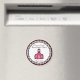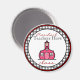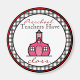 A magnet for teachers featuring the logo of The Pink Schoolhouse inside a circle shaped black gingham frame with red trim. Black and red text reads "Preschool Teachers have class."