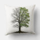 This decorative pillow features a unique illustration of a divided tree: one vibrant half full of leaves ("Presence") and the other half with dry, bare branches ("Absence"). An artistic and minimalist design ideal for those who appreciate the symbolism of nature, the cycle of life, and conceptual art. Perfect for living rooms, bedrooms, or as a gift with deep meaning.