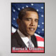 Striking photo art of President Barack Obama with flag as backdrop. Bottom reads "Barack Obama, 44th President of the United States". Available in various sizes with optional framing. By D. Bennett from Balance America.