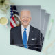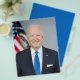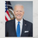 The photograph captures a moment in time during the Presidency Joe Biden the 46th President of the United States. Sunlight streams through a window, casting a warm glow on the figure of an Biden standing confidently in the centre of the frame. Standing tall with arms straight, a gesture that suggests both authority and a hint of casual ease. --- Mr. Biden is dressed impeccably in a dark suit, the crisp fabric contrasting sharply with the clean lines of his white shirt. A blue adds a touch of personality to the ensemble. --- A glimpse of patriotism is evident in the background. An American flag stands proudly on a pole to the man's left, its vibrant colours a subtle counterpoint to the cool blue of the wall behind him. --- Reelection soon to come for President Biden is the focal point of the image. His short white hair frames a kind face, etched with the lines of a life well-lived. A warm smile plays on his lips, conveying a sense of confidence, wisdom, and perhaps a hint of amusement.