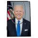 The photograph captures a moment in time during the Presidency Joe Biden the 46th President of the United States. Sunlight streams through a window, casting a warm glow on the figure of an Biden standing confidently in the centre of the frame. Standing tall with arms straight, a gesture that suggests both authority and a hint of casual ease. --- Mr. Biden is dressed impeccably in a dark suit, the crisp fabric contrasting sharply with the clean lines of his white shirt. A blue adds a touch of personality to the ensemble. --- A glimpse of patriotism is evident in the background. An American flag stands proudly on a pole to the man's left, its vibrant colours a subtle counterpoint to the cool blue of the wall behind him. --- Reelection soon to come for President Biden is the focal point of the image. His short white hair frames a kind face, etched with the lines of a life well-lived. A warm smile plays on his lips, conveying a sense of confidence, wisdom, and perhaps a hint of amusement.