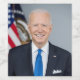 The photograph captures a moment in time during the Presidency Joe Biden the 46th President of the United States. Sunlight streams through a window, casting a warm glow on the figure of an Biden standing confidently in the centre of the frame. Standing tall with arms straight, a gesture that suggests both authority and a hint of casual ease. --- Mr. Biden is dressed impeccably in a dark suit, the crisp fabric contrasting sharply with the clean lines of his white shirt. A blue adds a touch of personality to the ensemble. --- A glimpse of patriotism is evident in the background. An American flag stands proudly on a pole to the man's left, its vibrant colours a subtle counterpoint to the cool blue of the wall behind him. --- Reelection soon to come for President Biden is the focal point of the image. His short white hair frames a kind face, etched with the lines of a life well-lived. A warm smile plays on his lips, conveying a sense of confidence, wisdom, and perhaps a hint of amusement.