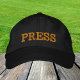 Embroidered Hats: Classic golden / black fashion baseball cap with text "PRESS" for media, reporter, journalist, photographers, news cover as well as dress up party, college newspaper, secret Santa / night out