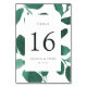 Chic botanical table number cards feature a border of forest green watercolor foliage, framing your table number. Personalise with your names and wedding date, or name each table for an extra personal touch. Design repeats on reverse side. Coordinates with our Pressed Botanical wedding invitation suite in Emerald.