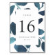 Chic botanical table number cards feature a border of dark teal blue watercolor foliage, framing your table number. Personalise with your names and wedding date, or name each table for an extra personal touch. Design repeats on reverse side. Coordinates with our Pressed Botanical wedding invitation suite in Ultramarine.