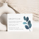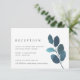 Designed to coordinate with our Pressed Botanical wedding collection, this chic ultramarine blue and white reception enclosure card features a single spring of vibrant dark teal watercolor botanical foliage, alongside your reception details, including timing, venue and address.