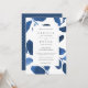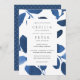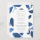 Elegant watercolor botanical wedding invitations feature your wedding details in classic lettering, framed by watercolor leaves in shades of indigo and cobalt blue.
