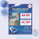 Customise this pressure washing (power washing) flyer template design to suit your needs and business. This pressure washing template displays pressure washer and water beads background.
