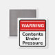 Warning - Contents Under Pressure - square magnet with red, white and black design.