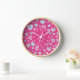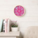 Pretty 3D Sparkly Crystal Gemstone Hearts on Pink Clock