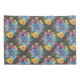 Beautiful pillow case set has large painted primary blue flowers with smaller ones in marigold yellow, purple and pink, all on a charcoal grey background giving it a dark and elegant look. Matching items available for bed, bath and throughout the home