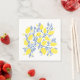 Pretty and Delicate Woodcut Effect Blue and Yellow Mediterranean-Inspired Lemon Vines Napkins. The intricate woodcut design combined with bright colours exudes an air of elegance and refinement. Whether you're hosting a gathering or enjoying a meal for two, these napkins add a touch of sophistication to any occasion.