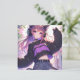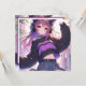 Personalised Girl's Birthday Party Invitations. Cute anime girl wearing headphones with cat ears and a purple and black sweater. Cute birthday party theme for gamer girls or music lovers or those that love the furry theme.