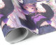 Purple Anime gift wrap for girl's birthday. Cute anime girl wearing headphones with cat ears and a purple and black sweater. Cute birthday party theme for gamer girls or music lovers or those that love the furry theme.