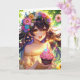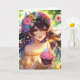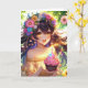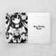 Anime girl with long brown hair, flowers in her hair, a pink and chocolate cupcake personalised birthday card. Inside card is a colouring page.