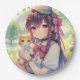Pretty Anime Holding Kitten Girl's Birthday Paper Plate