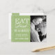 Elegant Apple Green Eat, Drink and Be Married - Damask Save the Date Postcard - Designed by Colourful Designs Inc. Copyright 2012. Text and Photograph can be personalised.