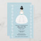 Customise and personalise this pretty bridal shower invitation with a light blue textured background and a pretty, raven haired Asian bride in a strapless wedding gown with a blue sash and pretty flourish pattern on her skirt. She wears a flower in her hair and accessorises with a lovely pair of tear drop shaped dangle earrings. Click on the following link to see all of our Chrissy H. Illustration © Chrissy H. Studios, LLC