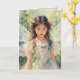 A sweet birthday card for a little girl. The front has an illustration of a pretty Asian girl with flowers in her hair, white wings and a vintage dress done in an impasto vintage style. The inside has a pretty poem for her.