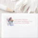 Cute baby shower return address labels done in white, with graphics of a pretty baby buggy with flowers and bows. Personalise the pink custom address to suit your needs.