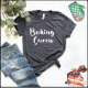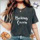 Rule the kitchen with this "Baking Queen" women's t-shirt. Featuring elegant white script on a black background, this tee is perfect for bakers who love to showcase their skills in style. A chic and fun addition to any baking enthusiast's wardrobe!