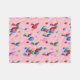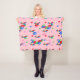 Cute fleece blanket printed with red, blue, green, purple and pink balloons on a pink background.