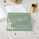 Pretty wedding guestbook design features watercolor white daisies corner on basil green background with white customisable text blocks in modern fonts