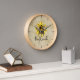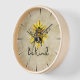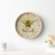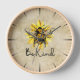 Pretty wall clock for any room in home or business features yellow and black bee on yellow flower with vintage parchment background and "be kind" text