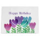 Pretty and feminine Happy Birthday gift bag with pink, blue and purple flowers and green leaves.