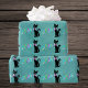 This wrapping paper roll is a teal colour with pretty black mid century cats wearing big pink bows and text Merry Christmas in bright colourful letters.