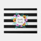 Pretty Black & White Stripes Floral Wreath Text Doormat