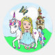 Pretty Blonde Princess and Unicorn Castle Classic Round Sticker