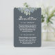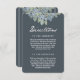 Lovely direction insert card in soft colour scheme of vintage shades of blue-grey, olive green and dusty purples on a pretty background in a deep grey blue hue. Original illustration of floral blooms adorn the top front and back of the card with subtle stripe pattern on the back as well. Elegant handwritten look for the main text element adds style and grace. Perfect for a spring, summer or garden wedding.