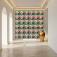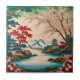 This pretty tile brings a peaceful Asian garden right to your home. You'll see lovely pagodas, trees full of red and pink flowers, and soft mountains in the background. It's a simple yet beautiful design that can add a special touch to your kitchen walls, bathroom, or anywhere you want a bit of calm and colour.