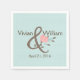 Add a special touch to your wedding desert table, with these pretty robin's egg blue polka dot paper napkins. Graphics of a coral and blue flower on the brown and symbol, decorates the middle, with custom brown text around it. Personalise the bride and groom's names and wedding date for your special day.