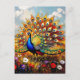 Pretty Blue and Gold Peacock Keeping in Touch Postcard