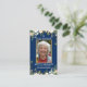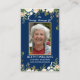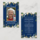 Remember your loved one at their memorial service and share a prayer card with your family and friends with this pretty and tasteful photo memorial prayer card. This funeral prayer card features a simple blue background with a pretty gold frame around a photo of your loved one. Beautiful antique white flowers adorn the top and bottom of the card. Enter a prayer on the back or keep this poignant poem from Christina Rossetti. Insert a photo of your loved one on the front with room to add a name, dates, and relationship.