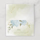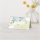 Romantic botanical place card featuring pretty blue flowers with some beautiful green leaves.