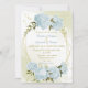 pretty blue flowers greenery geometric wedding invitation