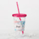 Acrylic tumbler with beautiful blue flowers on a pink background. An image of a rectangle shaped notebook page layered over top for you to write your text inside.