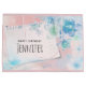 Large gift bag with beautiful blue flowers on a pink background. An image of a rectangle shaped notebook page layered over top for you to write your text inside.