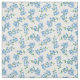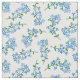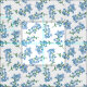 Shabby chic floral fabric with a pattern of forget me not flowers in blue against a white background.