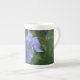 Pretty Blue Iris floral close-up with light yellow and white centre in full bloom in the garden with long green stems in the background. S himmering blue iris mug would make for a special gift, or pretty as part of a table place setting. Original Photography by TamiraZDesigns. Visit my store for matching accessories, and more original items at:
