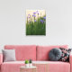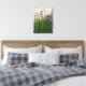 Decorate a wall space with this wrapped canvas print that features a photographic image of pretty, blue Irises and their lush, green foliage growing against a light coloured stucco wall behind them. A lovely, floral image! Customise your canvas size as desired along with frame options.